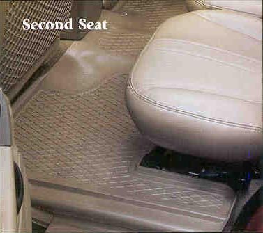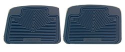 FLOOR MATS, REAR, SEMI UNIVERSAL ALL WEATHER MAT THAT CONFORMS TO FIT, RAISED OUTER LIP, WILL NOT STIFFEN OR CRACK, ANTI-SKID SPIKES PREVENT SLIPPING, ALL-WEATHER RUBBER MATERIAL IS NOT AFFECTED BY GAS, OIL, MUD, OR EXTREME TEMPERATURES, 100 YEAR WARRANTY, BLACK 2 PIECES